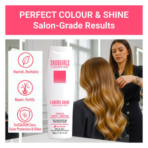 Together, the LUMIÈRE HIGHCURE Duo helps defend blonde, platinum, and highly-lifted hair against dryness, dullness, roughness, porosity, and breakage.