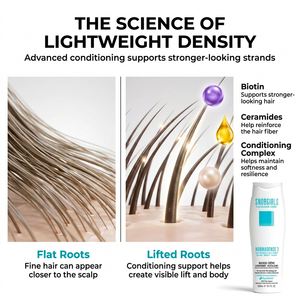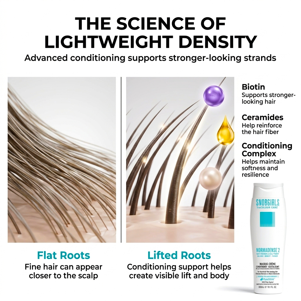 Fuller-, denser-looking hair — never coated, never weighed down.