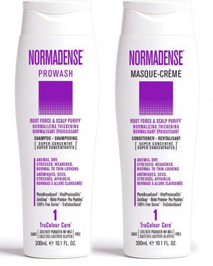 NORMADENSE-1* Weightless System deeply nourishes and helps purify, hydrate, re-balance, stimulate and strengthen the Nutrient-Deprived Zones of scalp, follicles and hair. Helps purify hair follicles and scalp of suffocating impurities, residues and clogging sebum; promoting scalp micro- circulation to sustain healthy scalp environment for full hair potential. Instantly, hair looks and feels energized, weightlessly lifted, stronger, resilient, thicker, denser and fuller from roots-to-ends - for long lasting manageability, style retention and healthy looking results.