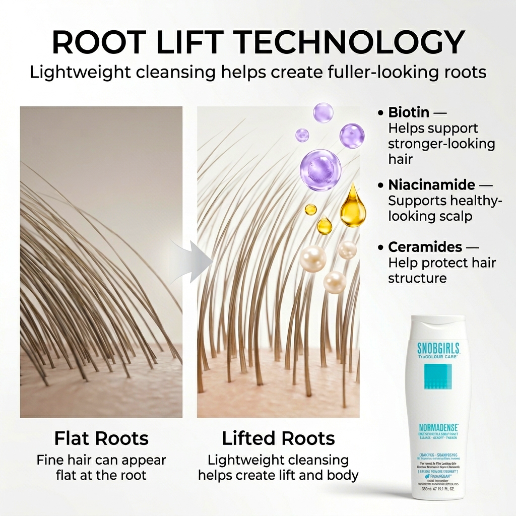 Fuller-, denser-looking hair — never stripped, never weighed down.