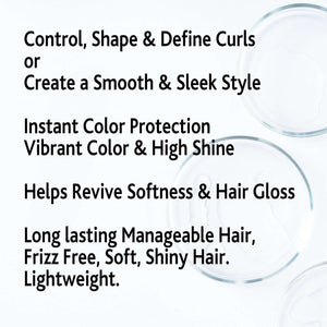 VICE-VERSA CURLS* Weightless System deeply nourishes, hydrates and re-conditions to re-balance and correct hair from the inside out, targeting curl curvature and torsion stress points. Helps actively protect, control, shape and define with long lasting manageability, suppleness fiber elasticity, softness, bounce, fluidity of movement and style retention. Locks out excess humidity. Frizz and Static Control.