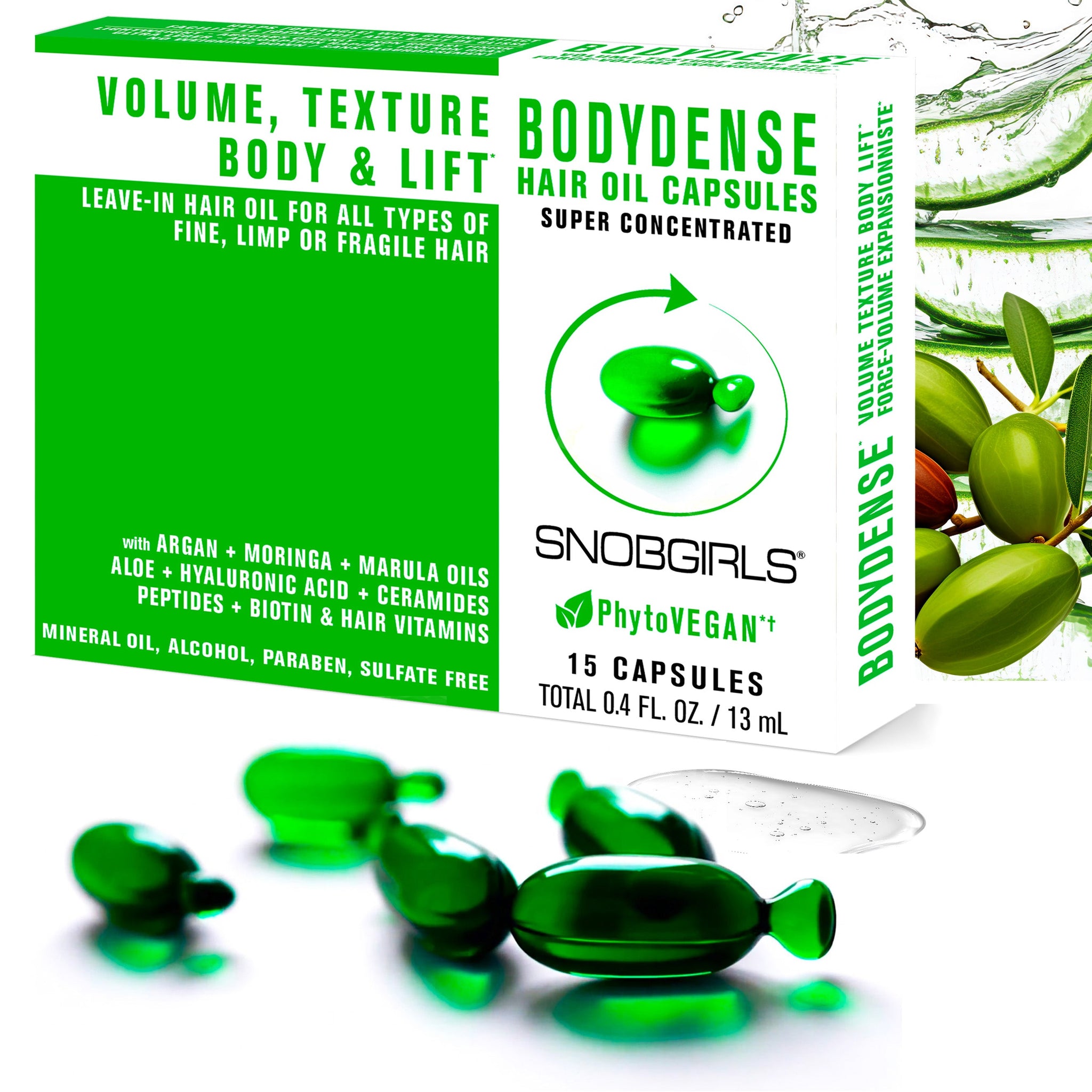 Aceite Vegano para el Cabello para todo tipo de Cabello Fino, Frágil, Delicado, Opaco, Seco o Lacio Experimenta un cuidado capilar transformador con el Aceite Vegano para el Cabello BODYDENSE, la solución definitiva para el cabello fino, frágil y opaco. Este aceite sin enjuague, súper concentrado y único en su tipo, está infundido con una poderosa mezcla de aceites de Argán, Moringa y Marula, junto con Ácido Hialurónico, Pantenol y Biotina. Se absorbe rápidamente para proporcionar una nutrición inigualable, mejorando el cuerpo, el volumen y el brillo. Eleva la resistencia y vitalidad de tu cabello de fibra a fibra, de raíz a punta, para una transformación impresionante.