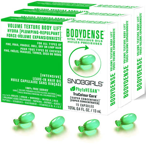 Aceite Vegano para el Cabello para todo tipo de Cabello Fino, Frágil, Delicado, Opaco, Seco o Lacio Experimenta un cuidado capilar transformador con el Aceite Vegano para el Cabello BODYDENSE, la solución definitiva para el cabello fino, frágil y opaco. Este aceite sin enjuague, súper concentrado y único en su tipo, está infundido con una poderosa mezcla de aceites de Argán, Moringa y Marula, junto con Ácido Hialurónico, Pantenol y Biotina. Se absorbe rápidamente para proporcionar una nutrición inigualable, mejorando el cuerpo, el volumen y el brillo. Eleva la resistencia y vitalidad de tu cabello de fibra a fibra, de raíz a punta, para una transformación impresionante.